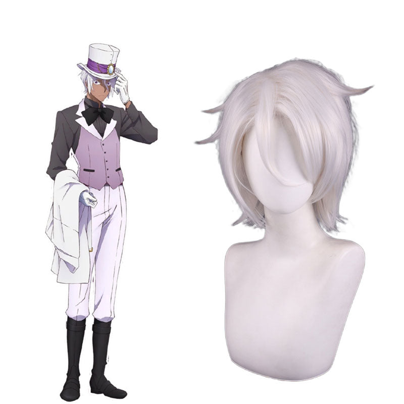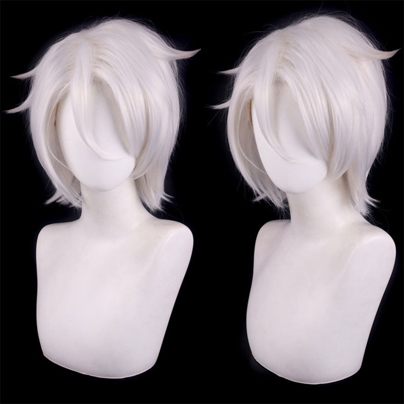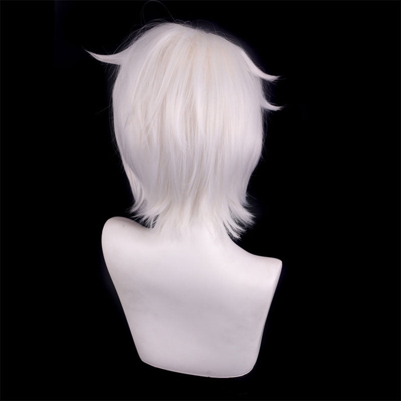Estudio de caso de la peluca corta blanca para cosplay de Vanitas Noe