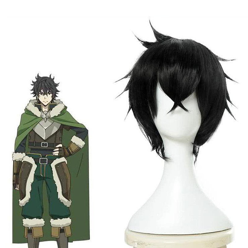 Pelucas de cosplay para hombre negras, cortas y rectas, de Naofumi Iwatani, The Rising of the Shield Hero