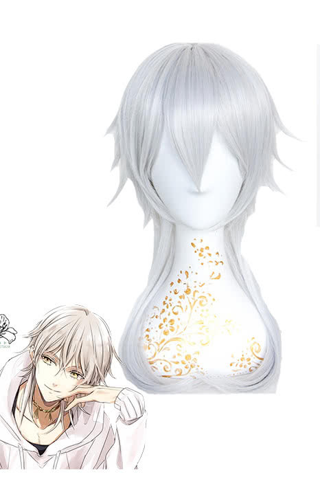 Pelucas de cosplay Touken Ranbu Tsurumaru Kuninaga de pelo sintético blanco, gris plateado, largo medio y liso
