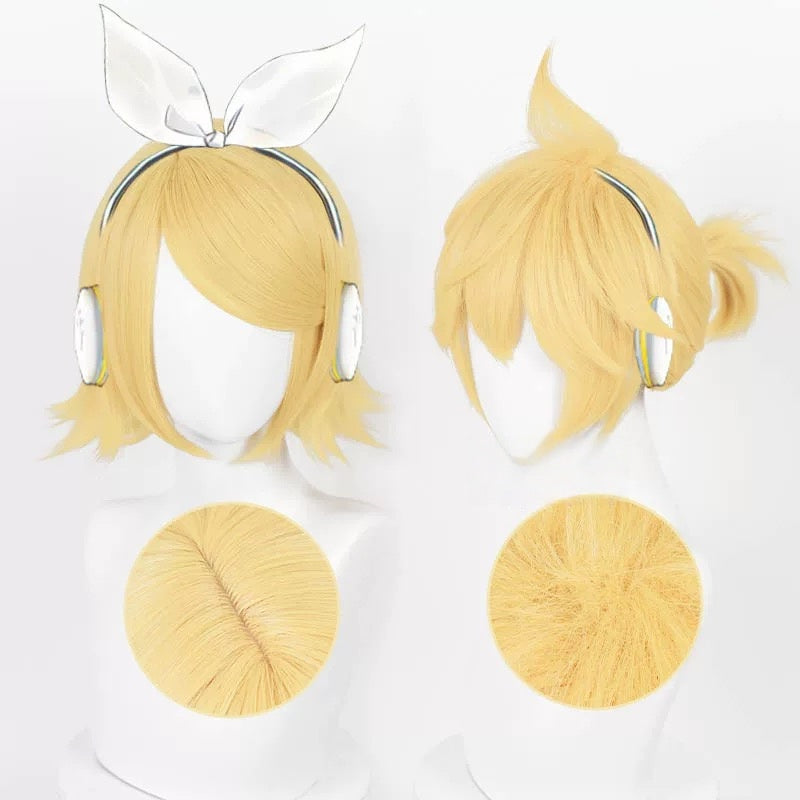 L-email Wig Vocaloid Kagamine Rin/Len Gold Yellow 32cm Halloween Cosplay Wig