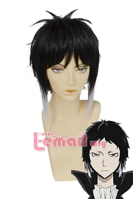 Anime Bungou Stray Dogs Ryunosuke Akutagawa Short Straight Black White Gradient Cosplay Wigs