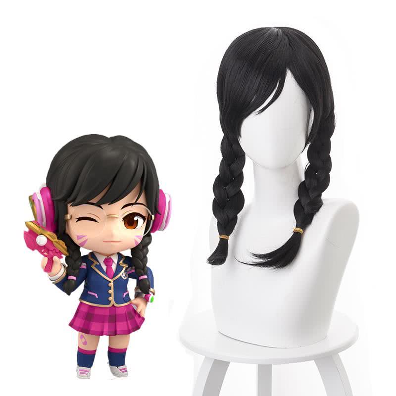 OW Academy D?Va Hana Song Long Black ponytail Cosplay Wigs