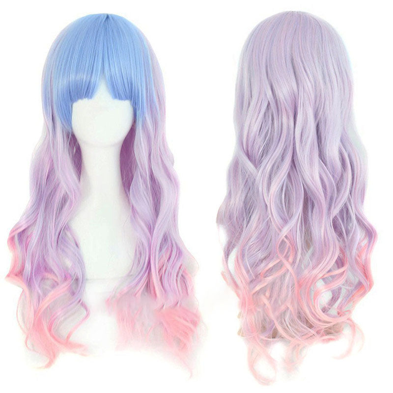 15 Colors Gradient Big Wave Long Curly Hair Cosplay Wigs-J