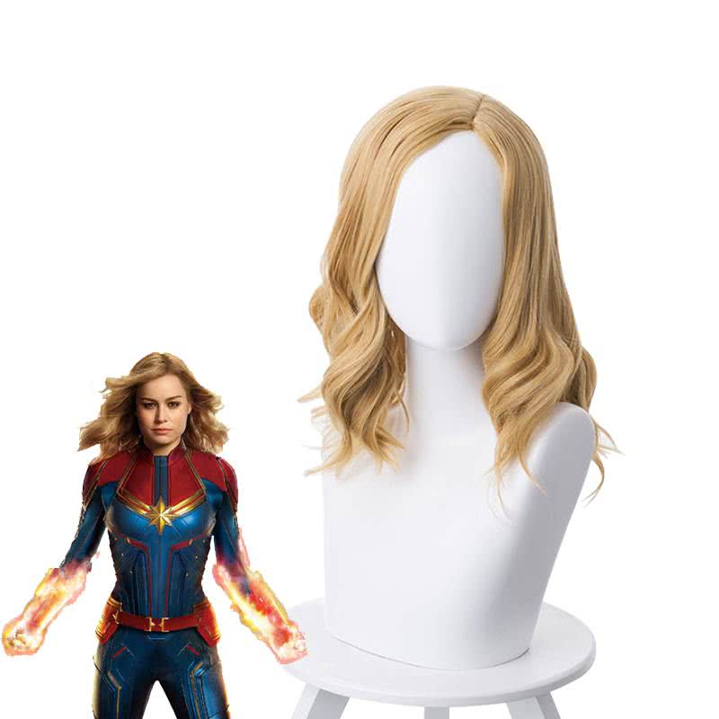 Anime Captain Marvel Carol Danvers Curly Golden Brown Cosplay Wigs