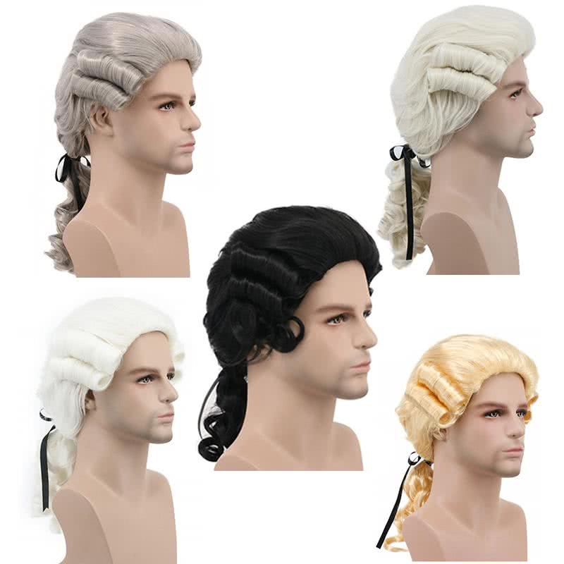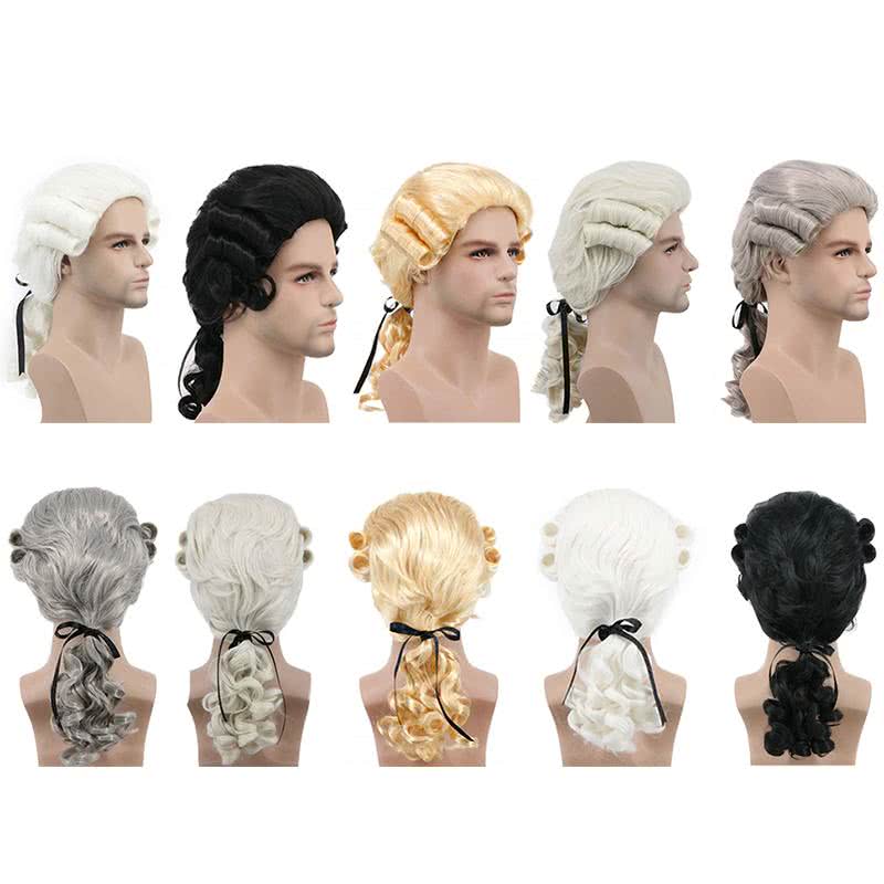 Halloween Men Long Curly Judge Wigs Evening Party Cosplay Wigs