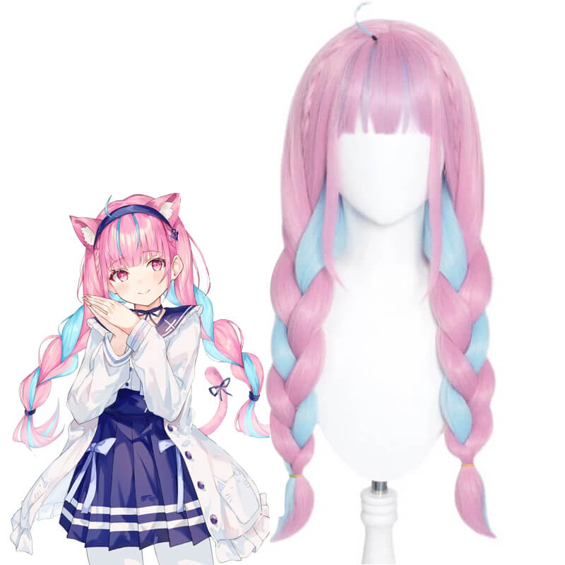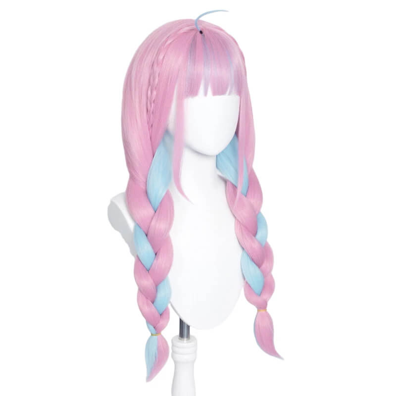 Hololive VTuber Minato Aqua Blue Pink Braided Cosplay Wigs