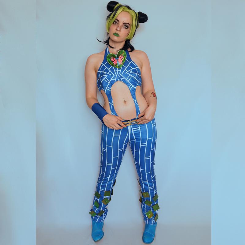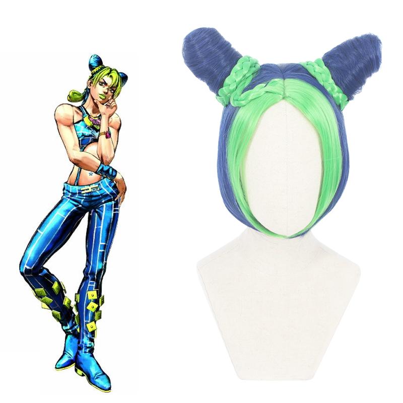 JoJo's Bizarre Adventure Jolyne Cujoh Blue Mixed Green Cosplay Wigs