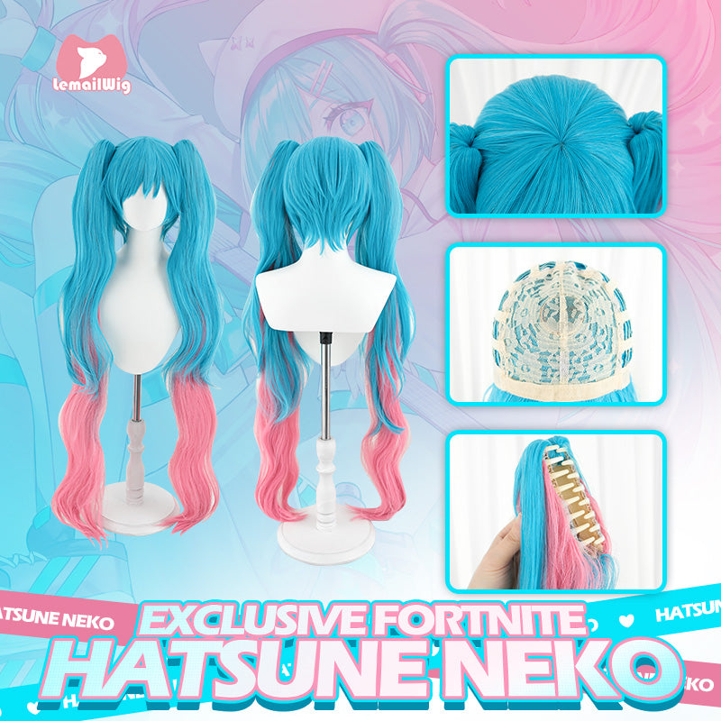 【48HR SHIP】L-email Wig Exclusive Fortnite Neko Hatsune Miku Cosplay Wig