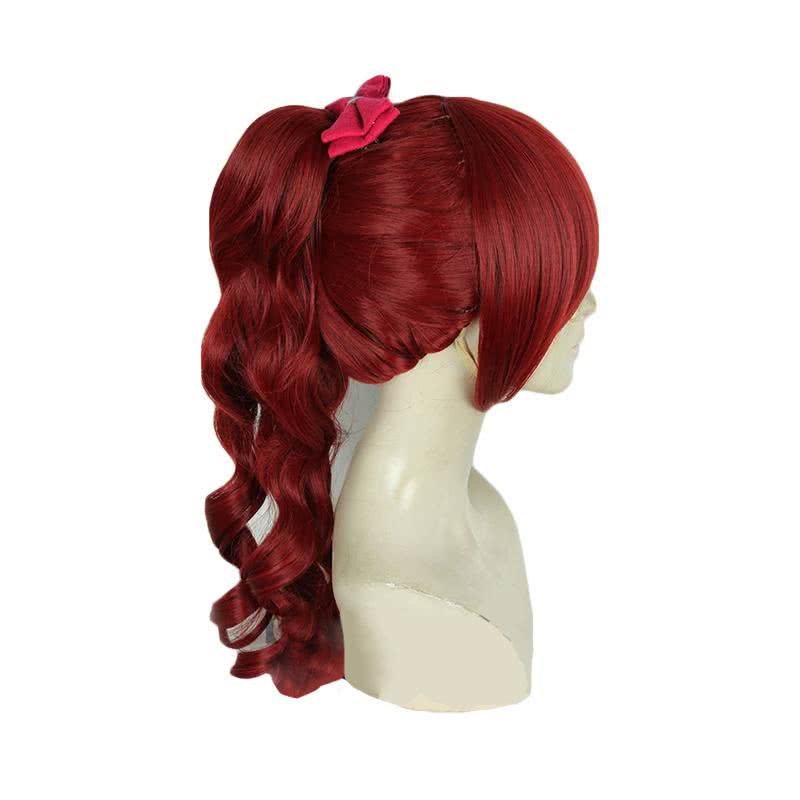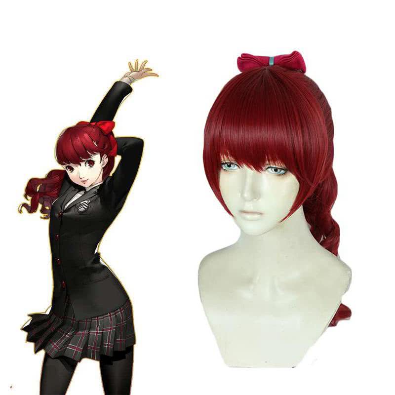 Persona 5 Royal Kasumi Yoshizawa Long Curly Wine Red Ponytail Cosplay Wigs