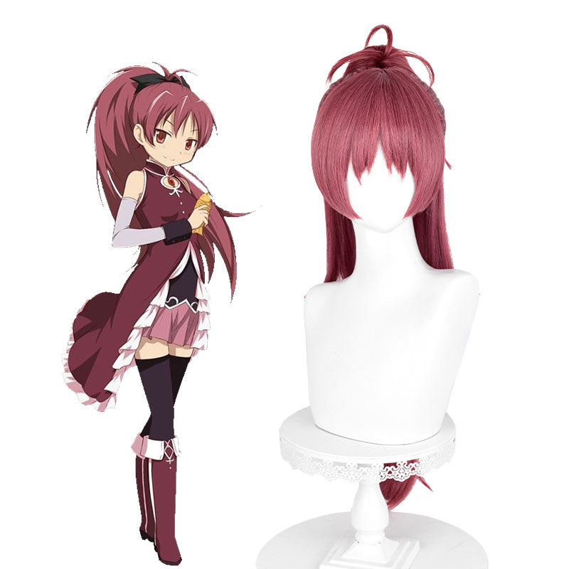 Puella Magi Madoka Magica Kyouko Sakura Wine Red Cosplay Wig