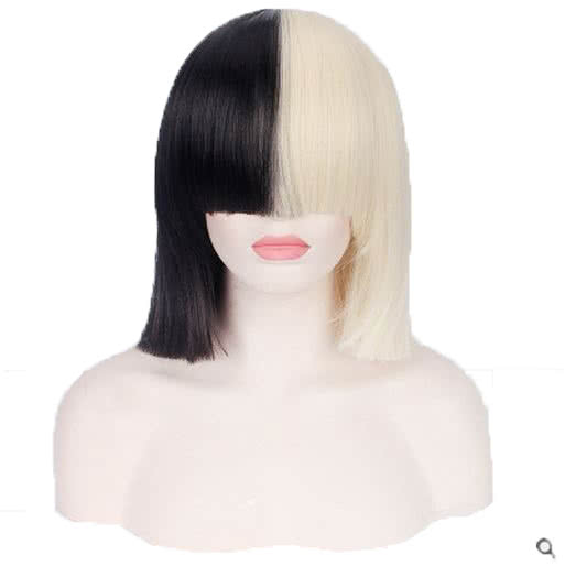 Singer Sia Short Straight Black Mixed Blonde Fashion Cosplay Hair Wigs